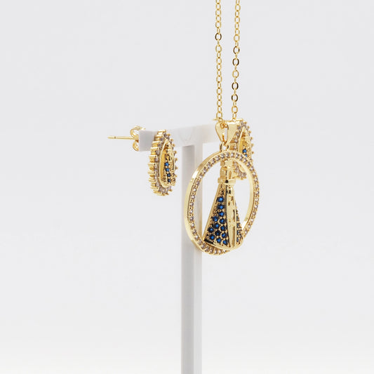Colar e Brincos Nossa Senhora Aparecida - Conjunto Católico