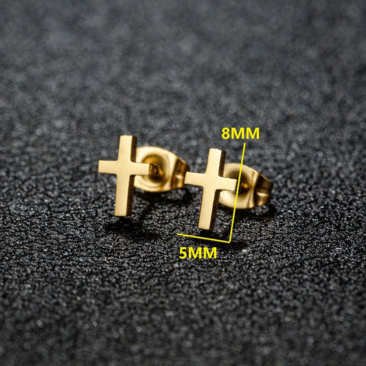 Brincos Pequenos Cruz em Aço Inoxidável
