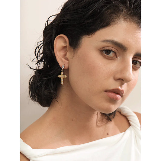 Brincos Dourados Cruz Celestial