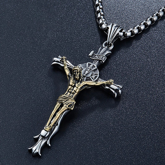 Colar Cruz Jesus em Aço Inoxidável Vintage para Homens