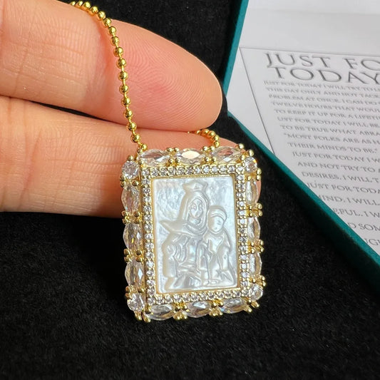 Colar Religioso de Madrepérola com Medalha da Virgem Maria