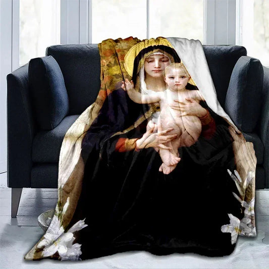 Cobertor Religioso Jesus Nossa Senhora e Sagrada Família - Conforto e Fé - 150x200 cm