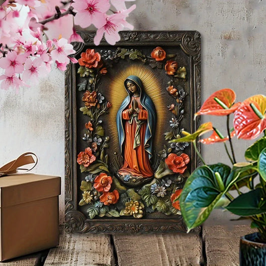Placa Decorativa Nossa Senhora de Guadalupe com Flores