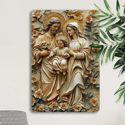 Placa Decorativa Sagrada Família em Tons Alaranjados