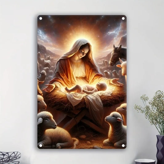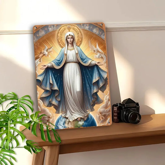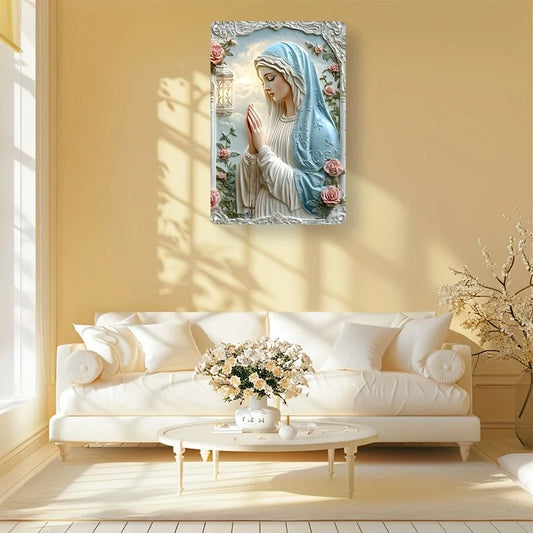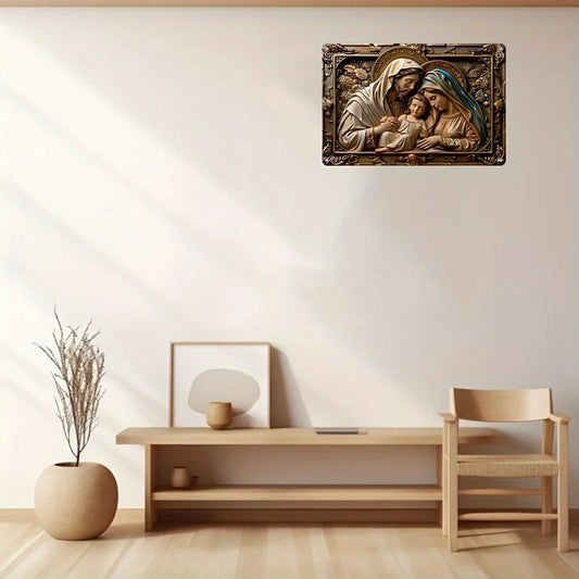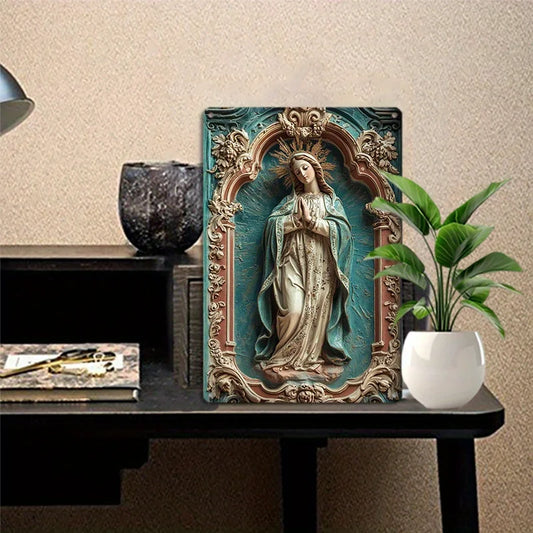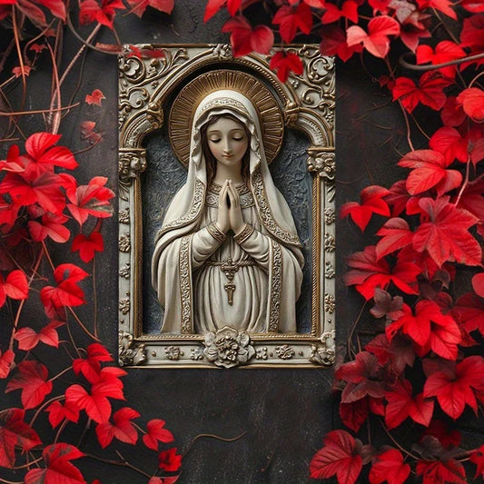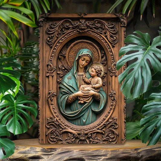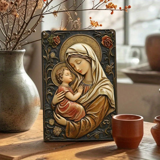 Placa Decorativa de Maria e Jesus com Acabamento Texturizado Premium