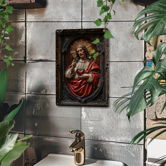 Placa Decorativa Sagrado Coração de Jesus Estilo Realista