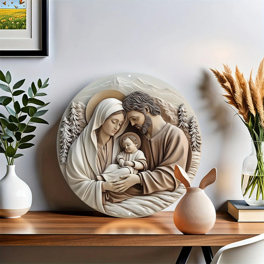 Placa Decorativa Redonda Sagrada Família 2D em Alumínio