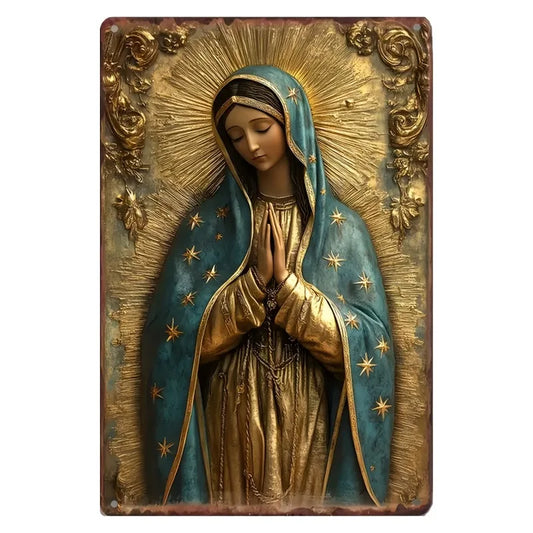 Placa Decorativa Nossa Senhora de Guadalupe em Tons Dourados