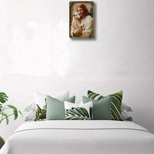 Placa Decorativa 2D de Jesus Cristo em Impressa Madeira - Estilo Retrô