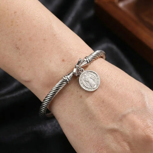 Pulseira Medalha São Bento em Aço Inoxidável