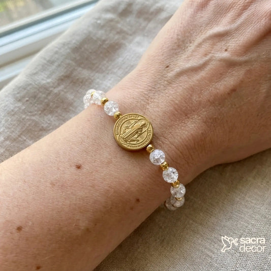 Pulseira de Contas com Medalha de São Bento