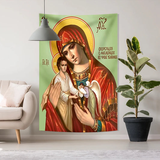 Tapeçaria Católica Virgem Maria para Decoração de Parede