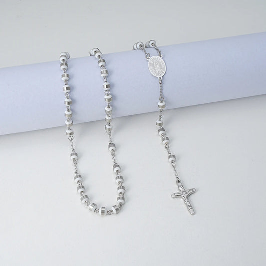 Colar Rosário de Aço Inoxidável com Medalha Milagrosa