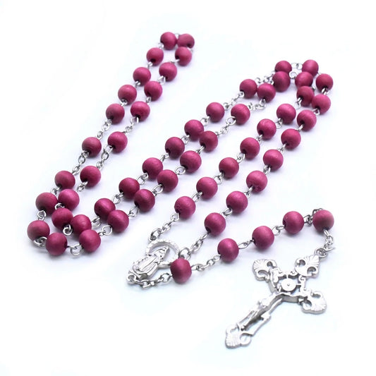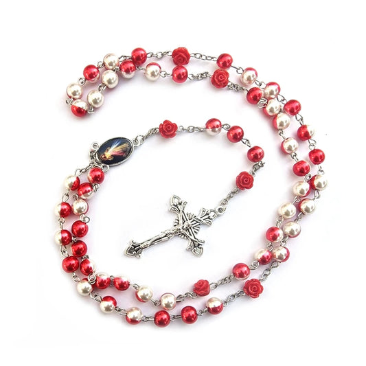 Terço de Nossa Senhora das Graças com Contas Vermelhas de Madeira 82cm
