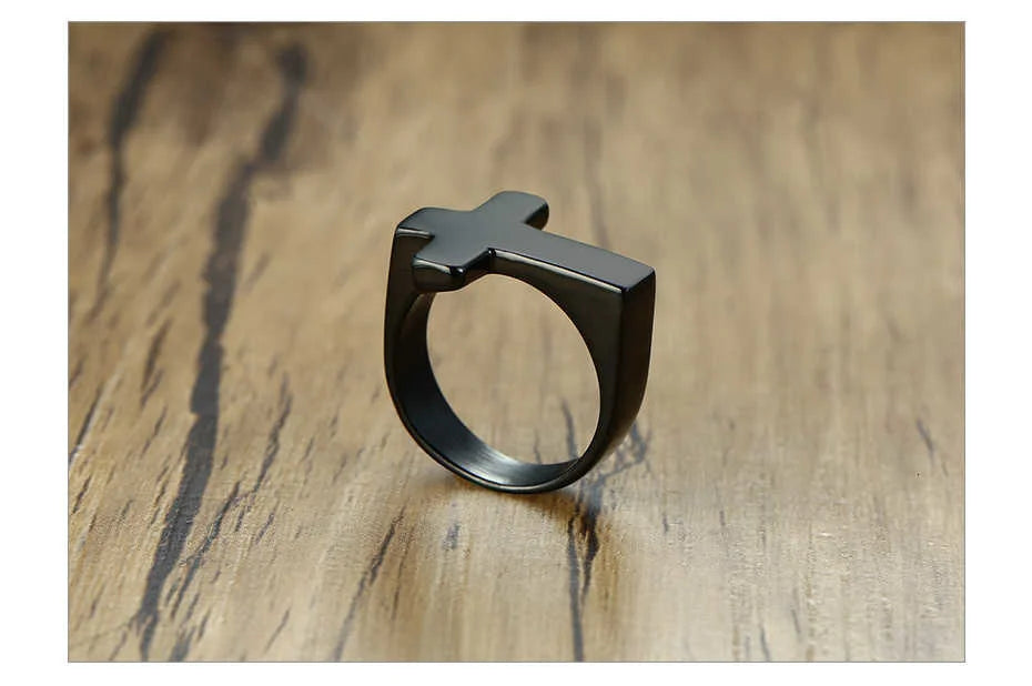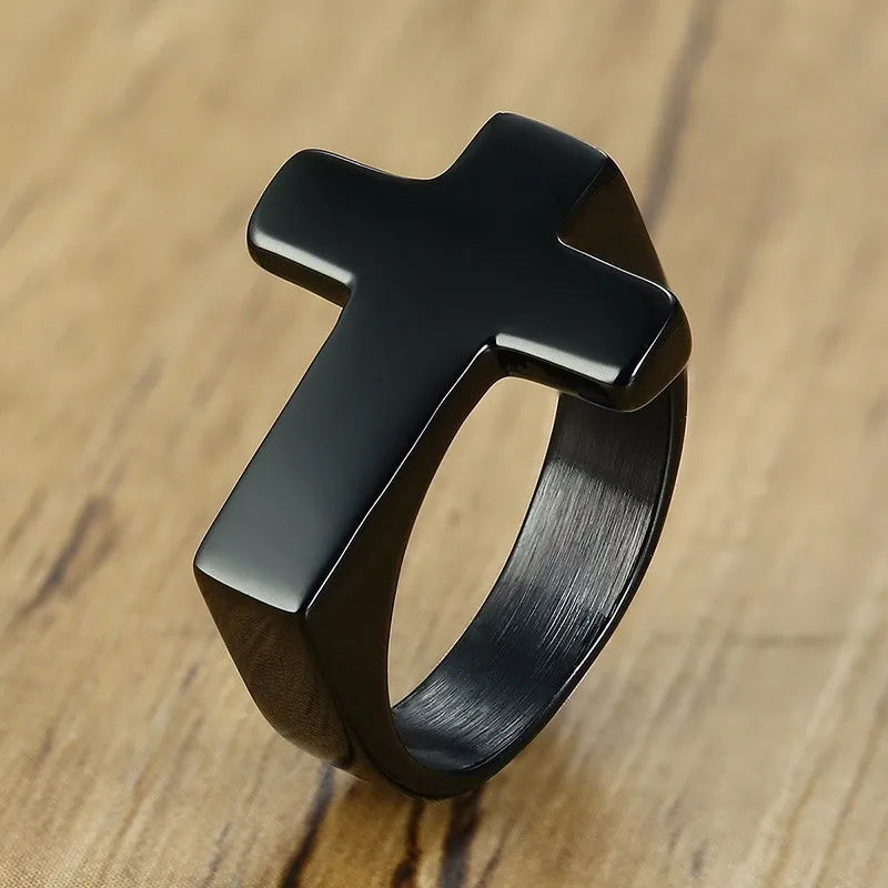 O Anel de Cruz em Aço Inoxidável foi criado para o homem que entende que fé não é ornamento — é fundamento.