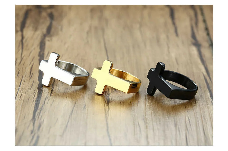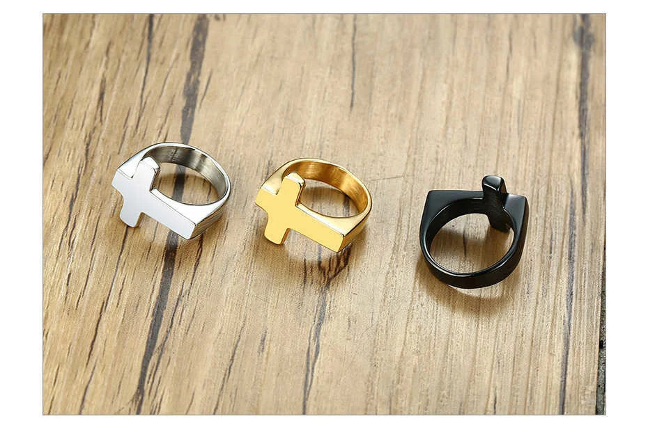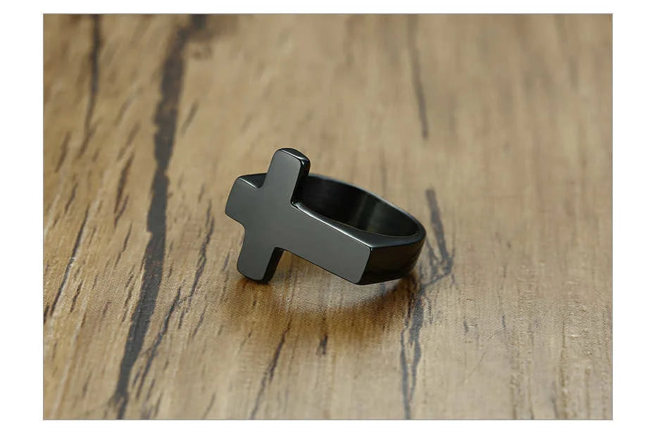 Anel Masculino Cruz em Aço Inoxidável – Força e Fé em Cada Detalhe