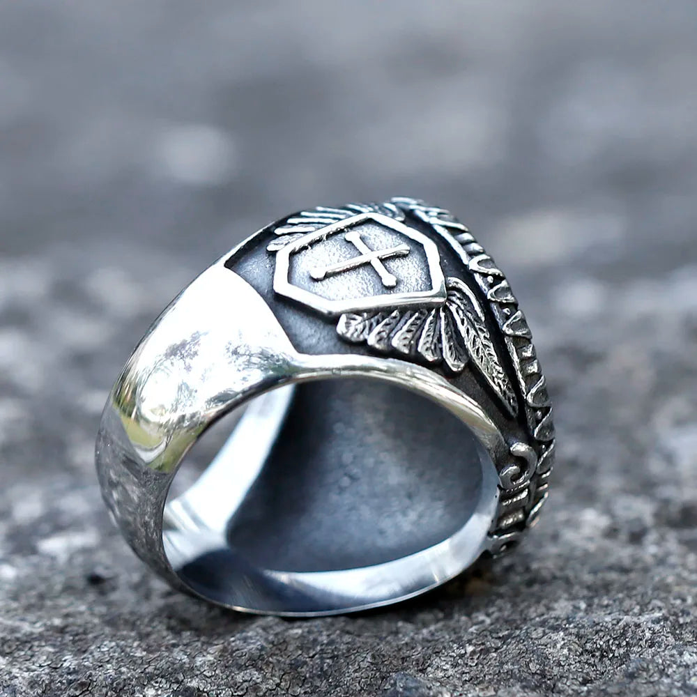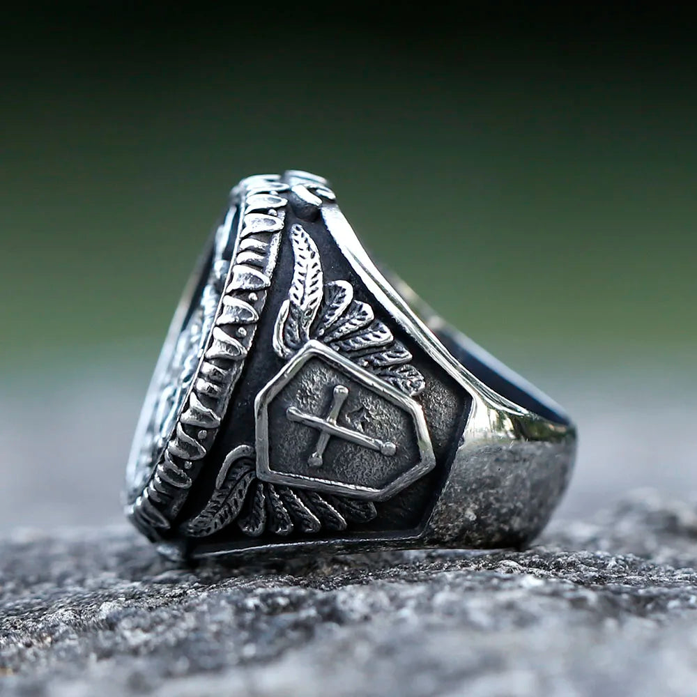 Anel Masculino Prata São Miguel em Aço Inoxidável 316L