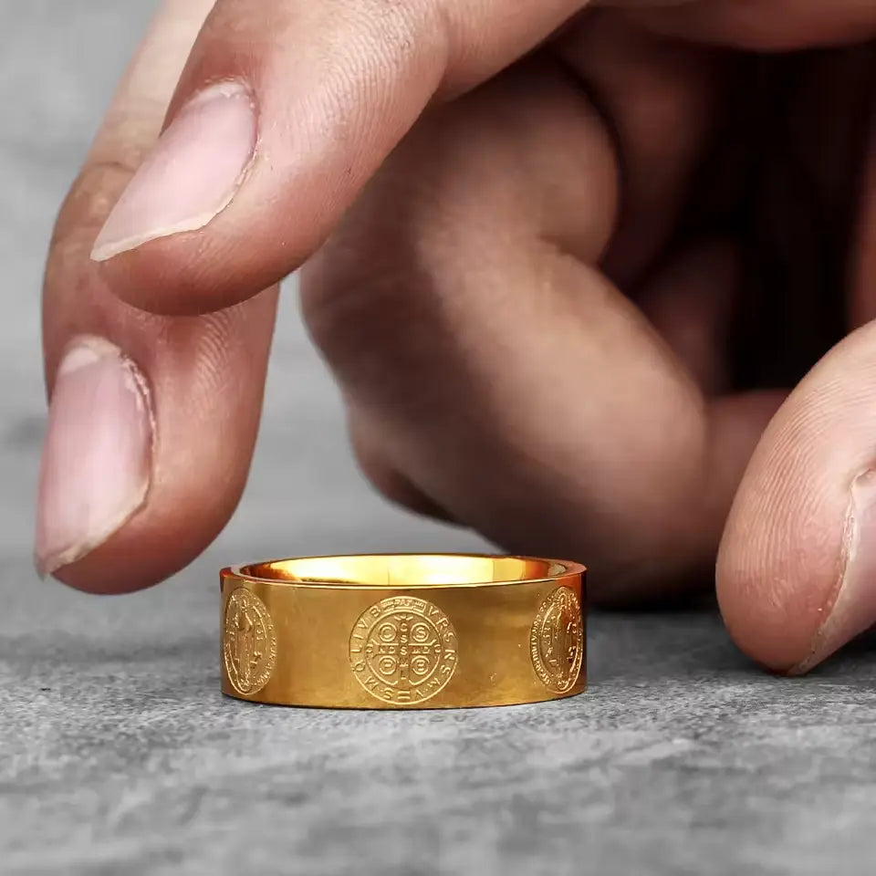 O Anel de São Bento une a força espiritual do santo protetor ao design robusto e elegante.