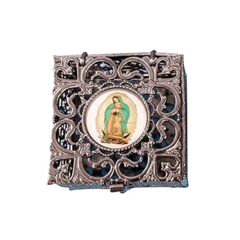 Apresentamos a Caixa de Rosário Decorativa, uma peça essencial para armazenar seus itens religiosos com elegância e segurança. Feita de liga de zinco, esta caixa é durável e resistente, garantindo proteção para seus rosários e outros objetos de devoção.