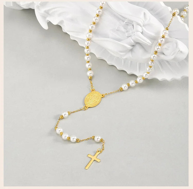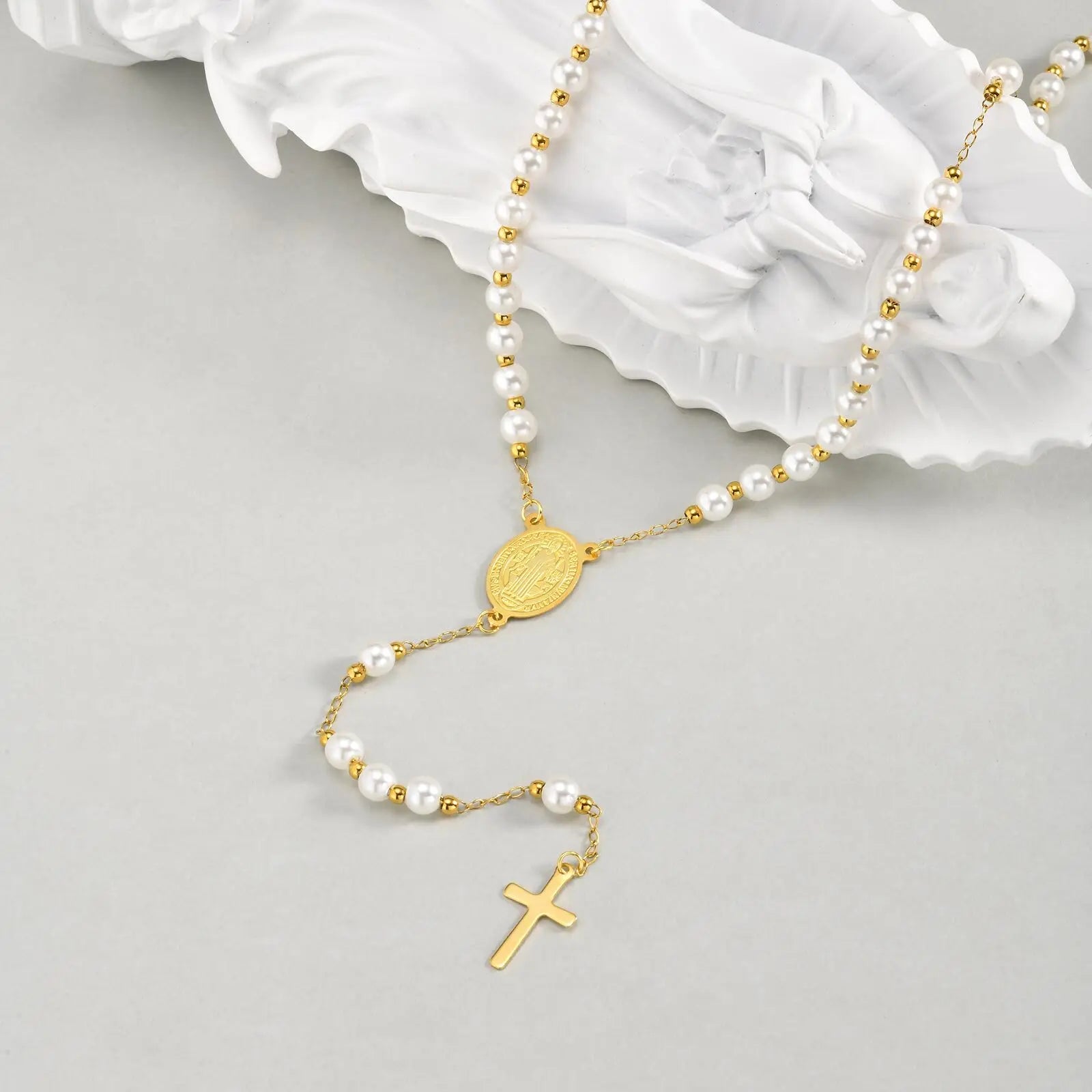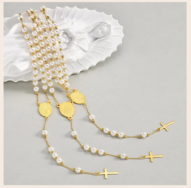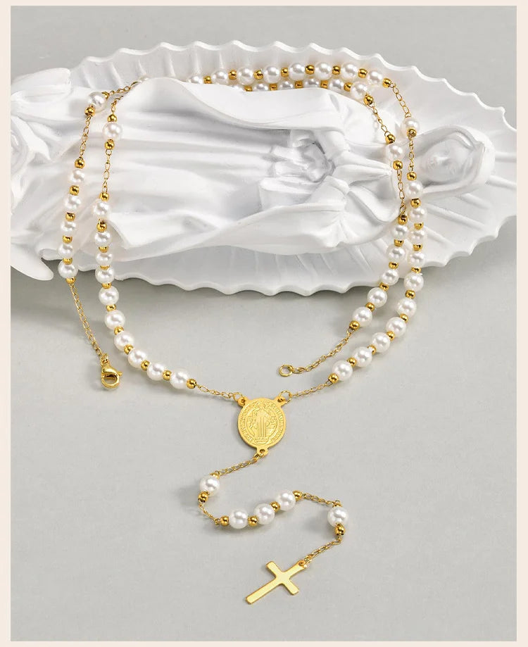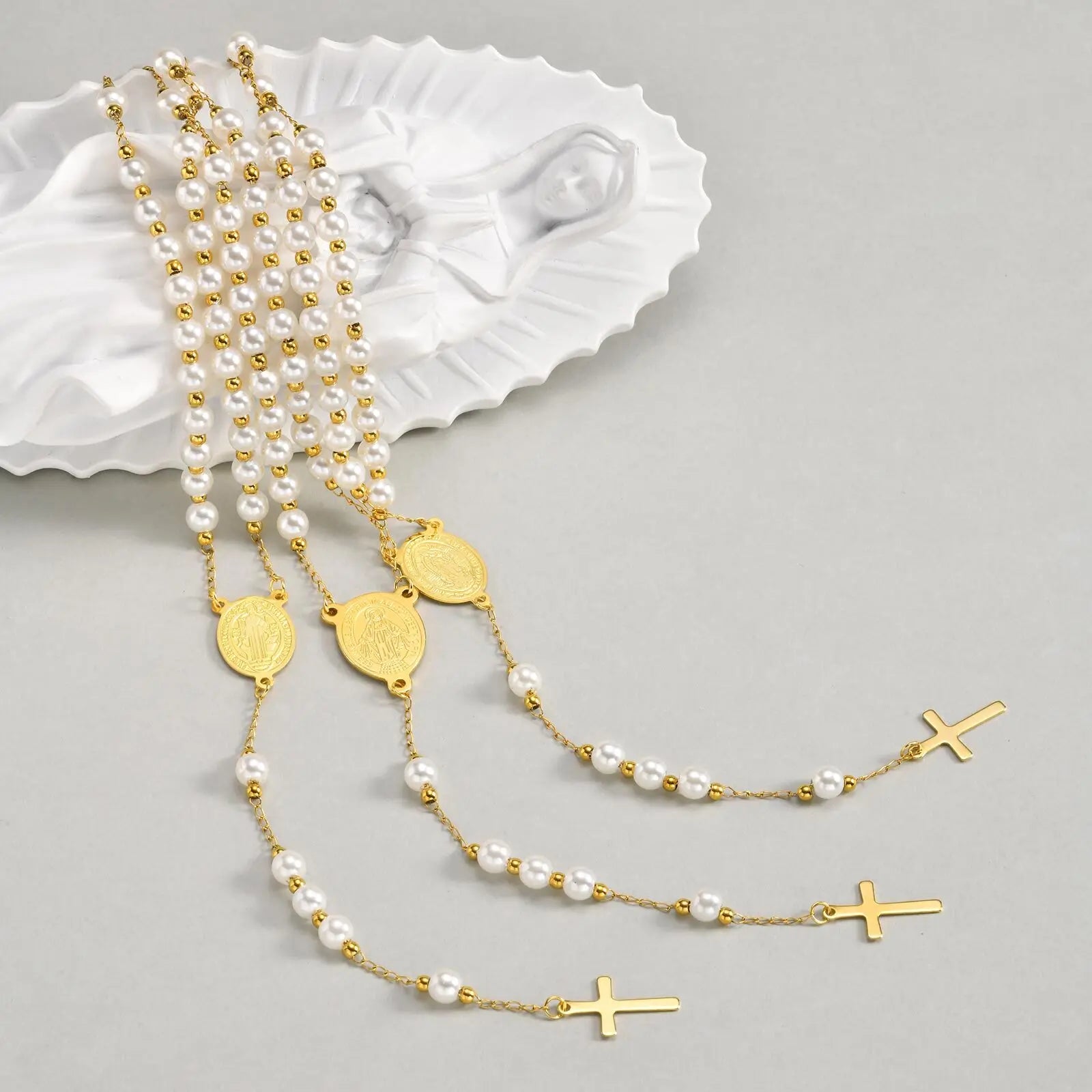 Escolha hoje o Colar Terço com Pérolas de Acrílico Banhado a Ouro 18k e expresse sua fé com elegância e confiança.