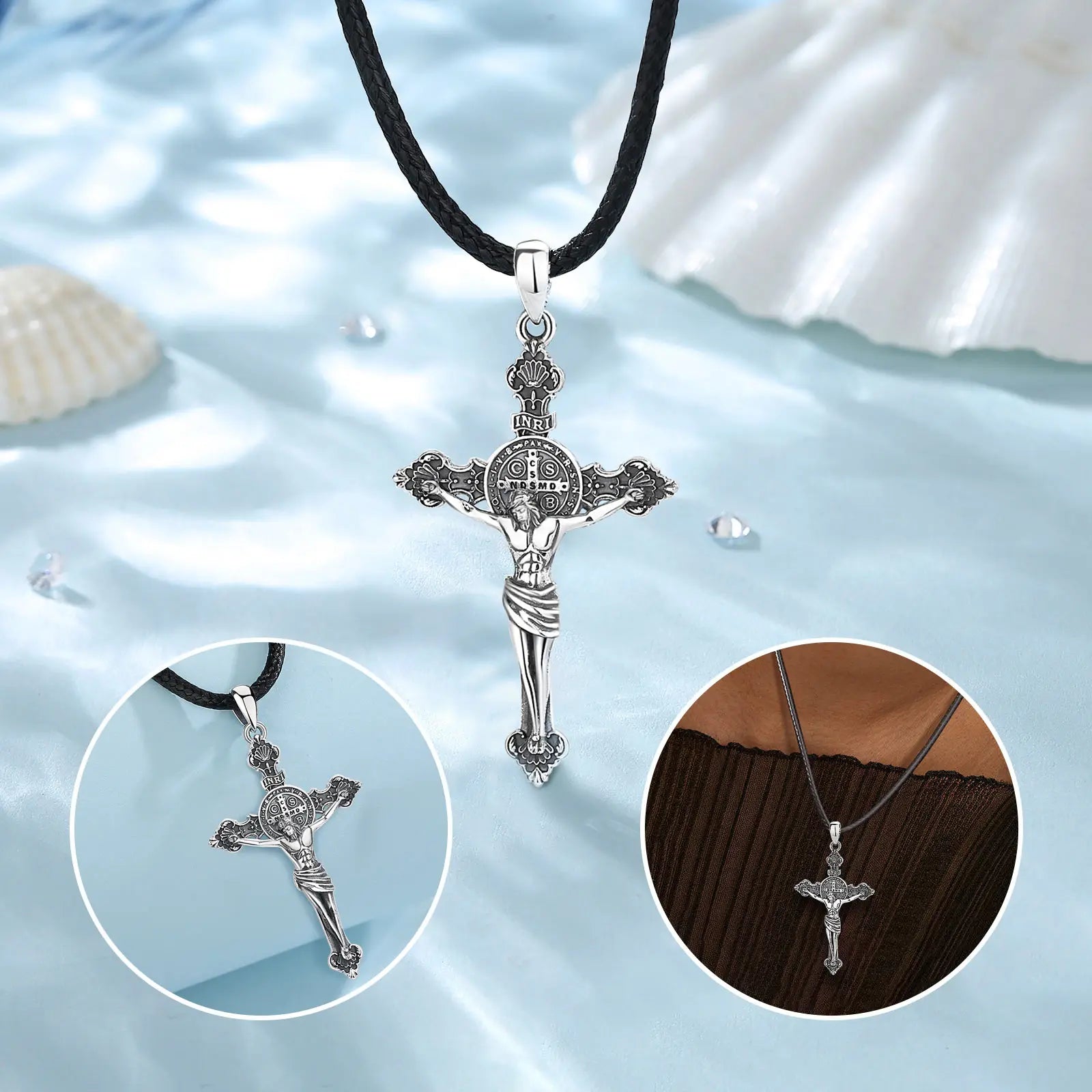 O símbolo da Cruz de São Bento em prata nobre para expressar devoção com elegância.