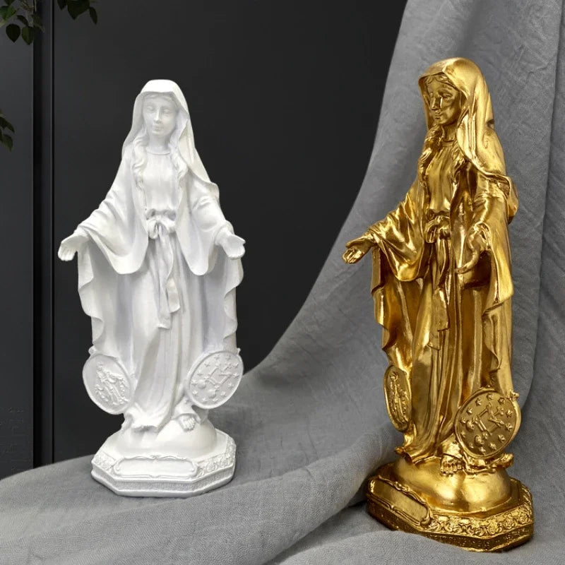 Feita em resina de alta qualidade, cada detalhe é cuidadosamente moldado e pintado à mão, revelando a delicadeza do olhar, das vestes e da simbologia presente. Uma peça durável, perfeita para quem deseja aprofundar sua vida espiritual com reverência e beleza.