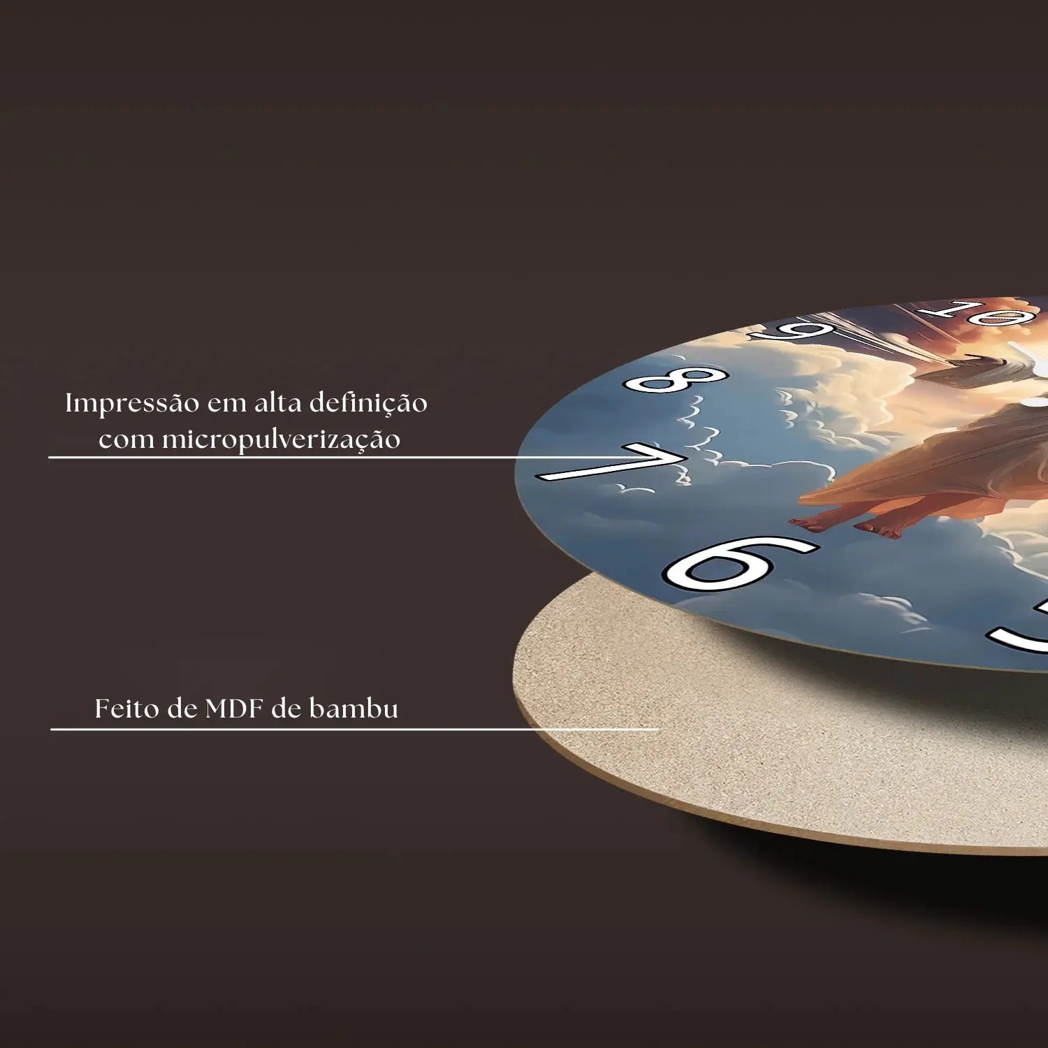 Produzido em MDF de bambu, une beleza, sustentabilidade e resistência. Silencioso, preciso e elegante, é ideal para espaços de oração, estudo ou descanso, onde o tempo deve ser marcado sem ruídos, mas com sentido.
