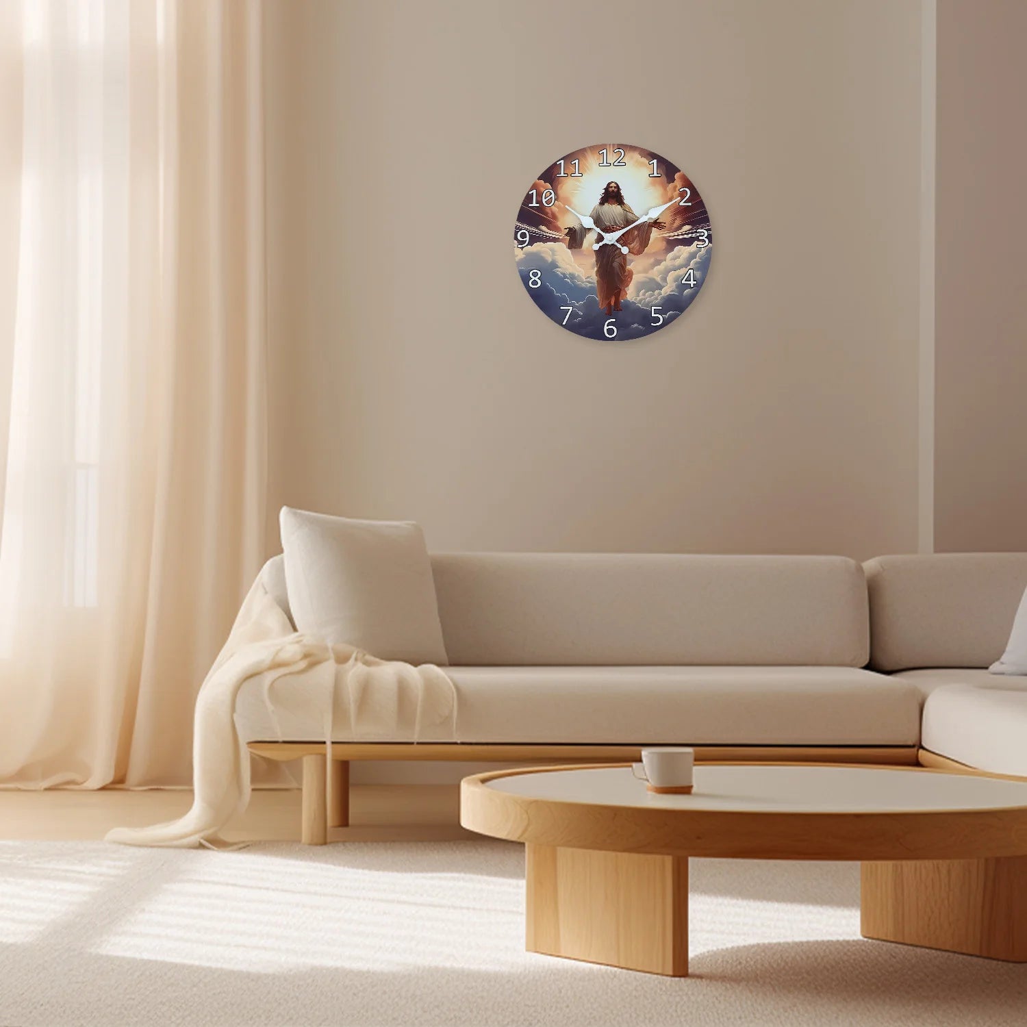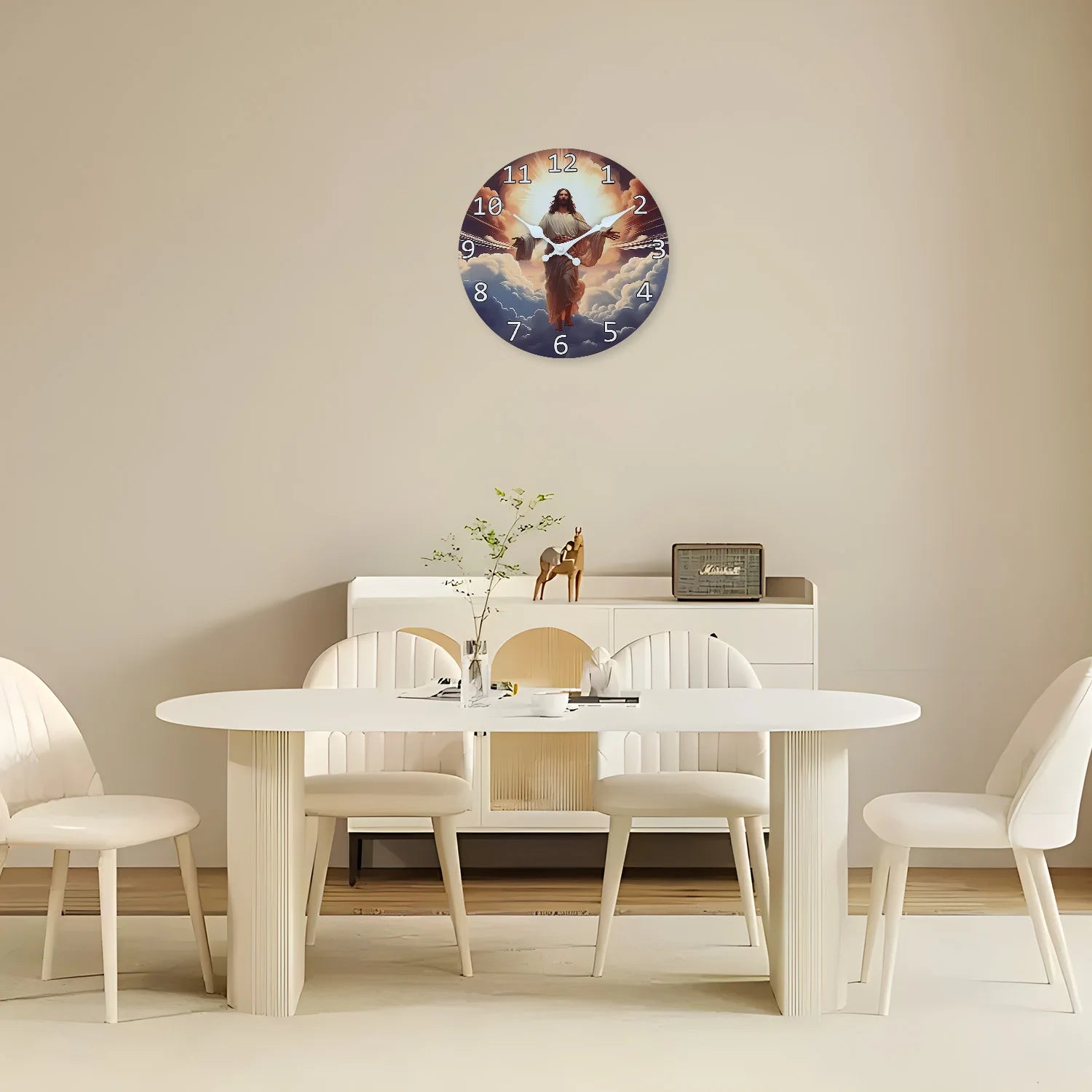 O Relógio de Parede Jesus Subindo aos Céus retrata esse momento com profundidade e reverência — transformando cada segundo em oportunidade de lembrar que o tempo corre, mas a fé permanece.