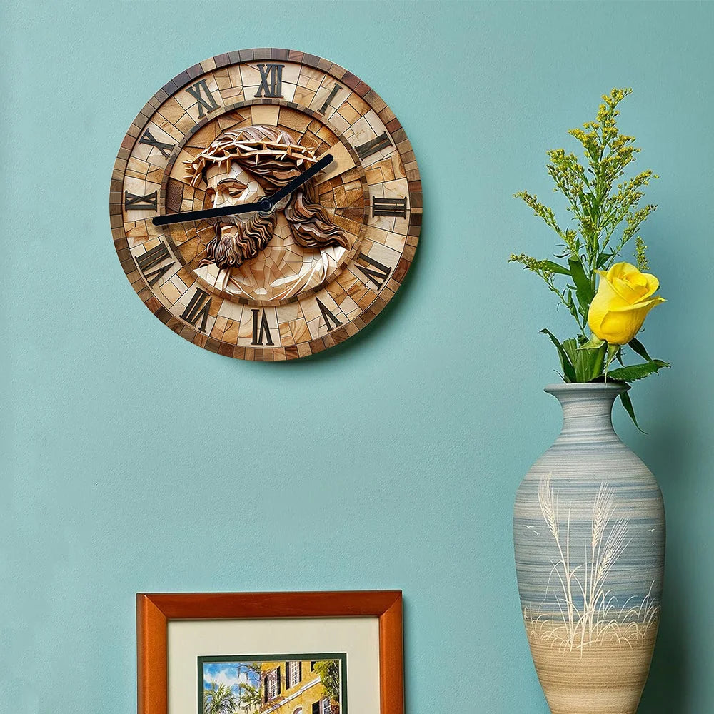 Adicione um toque de serenidade e beleza à sua casa com o nosso Relógio de Parede Religioso Silencioso Jesus Coroado de Espinhos.