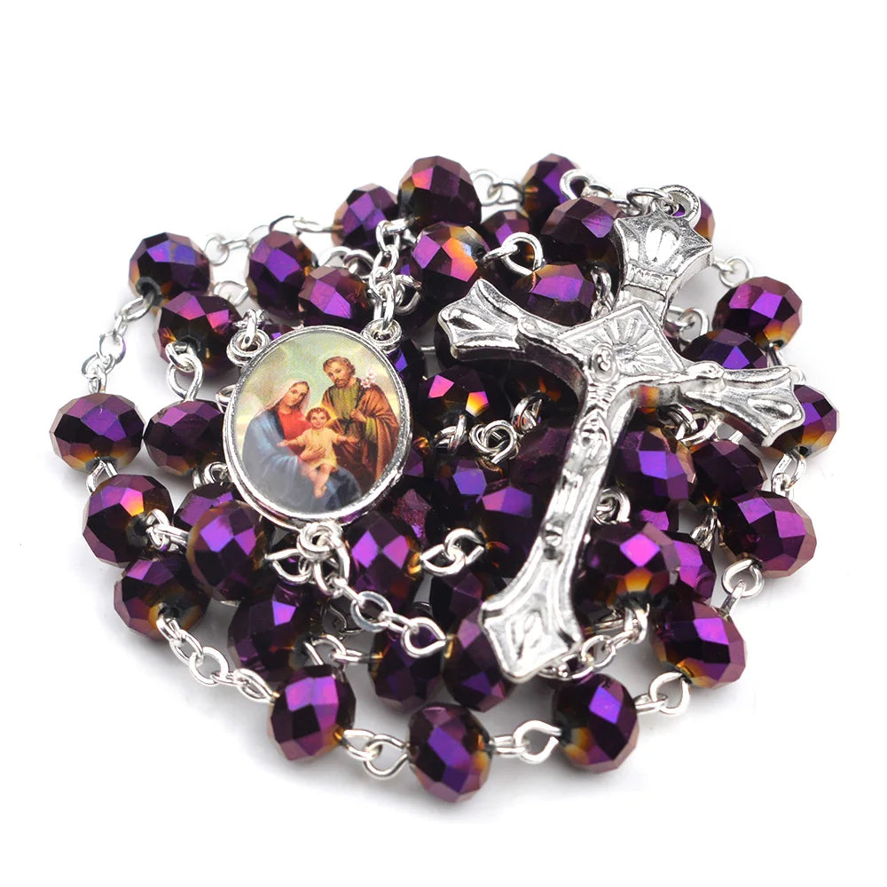 As contas em cristal roxo (8x6 mm) oferecem resistência e elegância, tornando a oração mais presente e significativa. Leve e prático, acompanha você na igreja, em peregrinações ou na oração diária em casa.