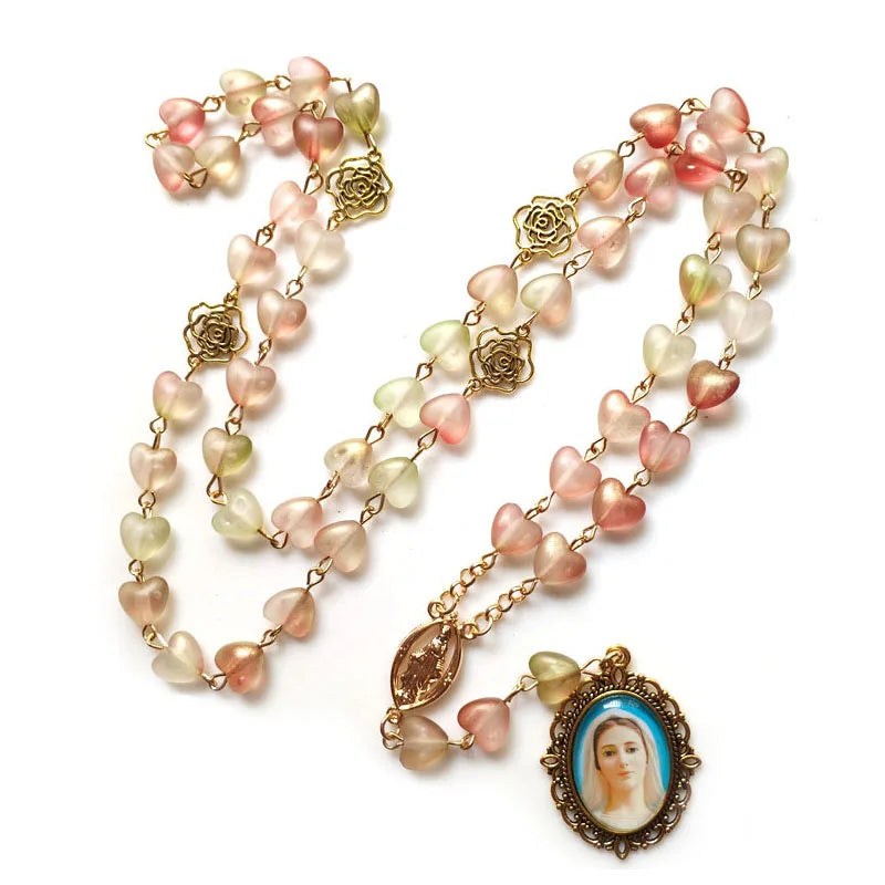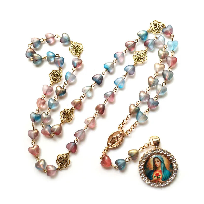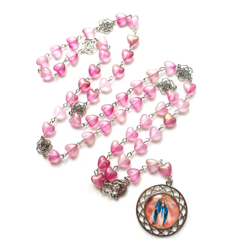 Com contas em formato de coração (10 mm), ele recorda a união entre a dor de Maria e o amor que nunca deixa de acolher os filhos.