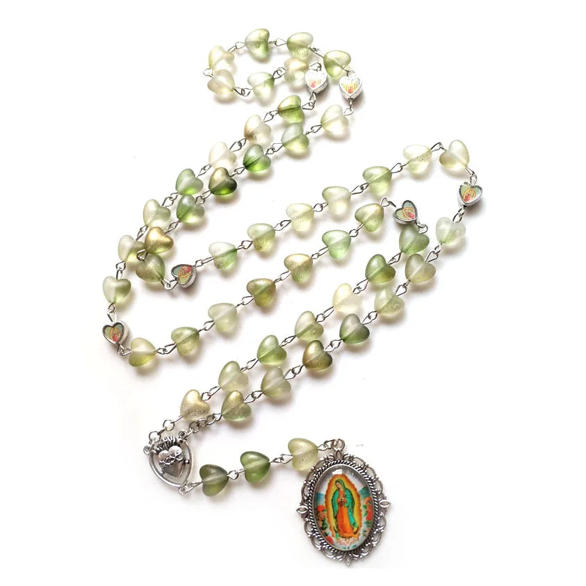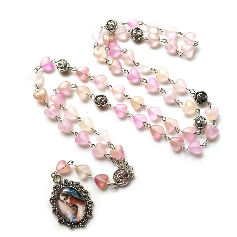 - Contas em formato de coração (10 mm): símbolo de compaixão e entrega amorosa.