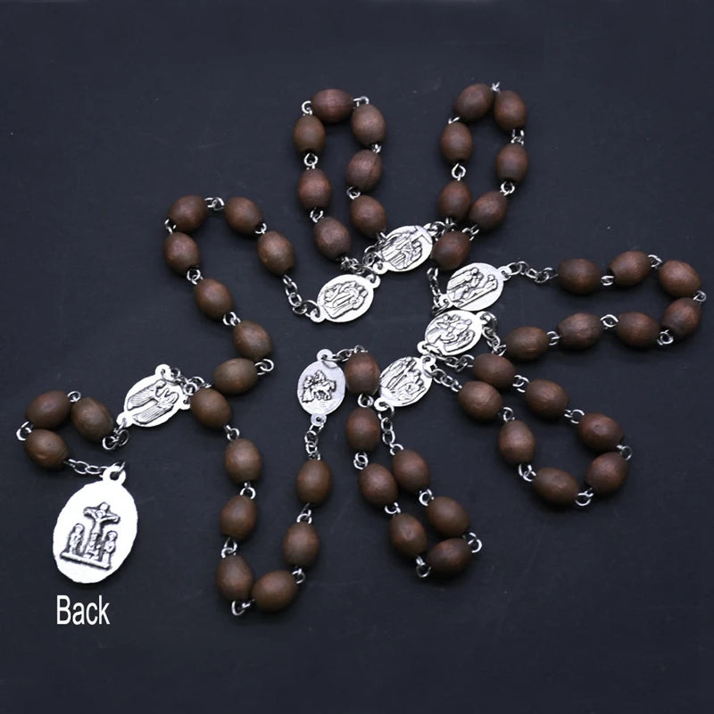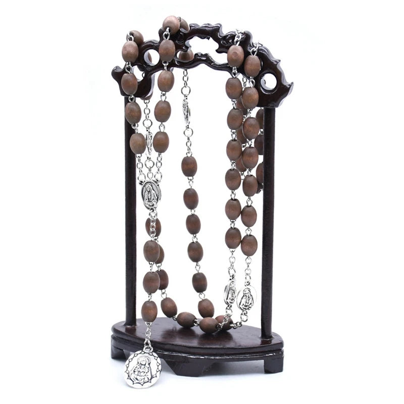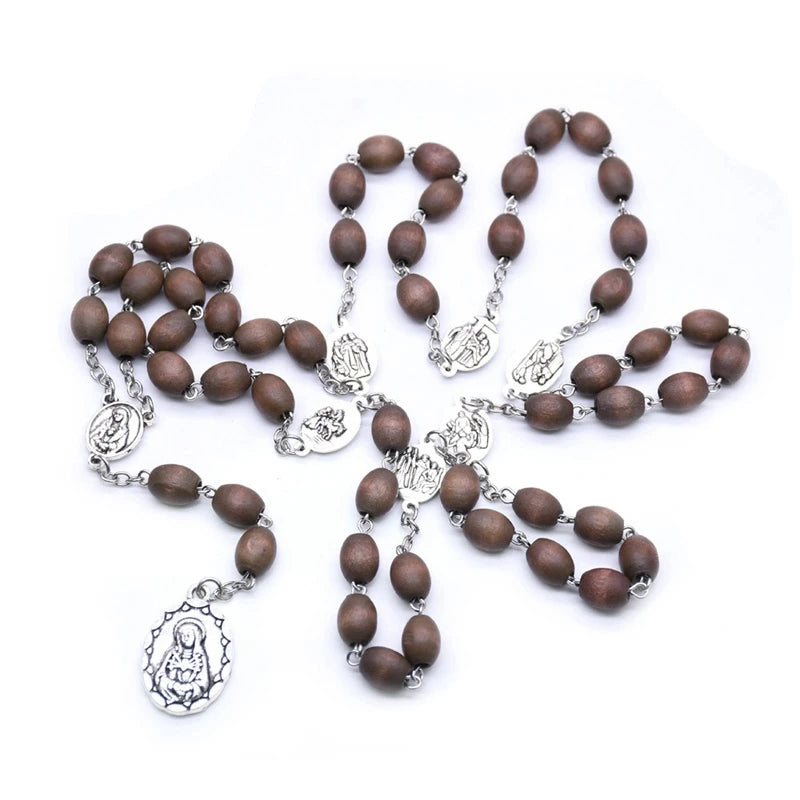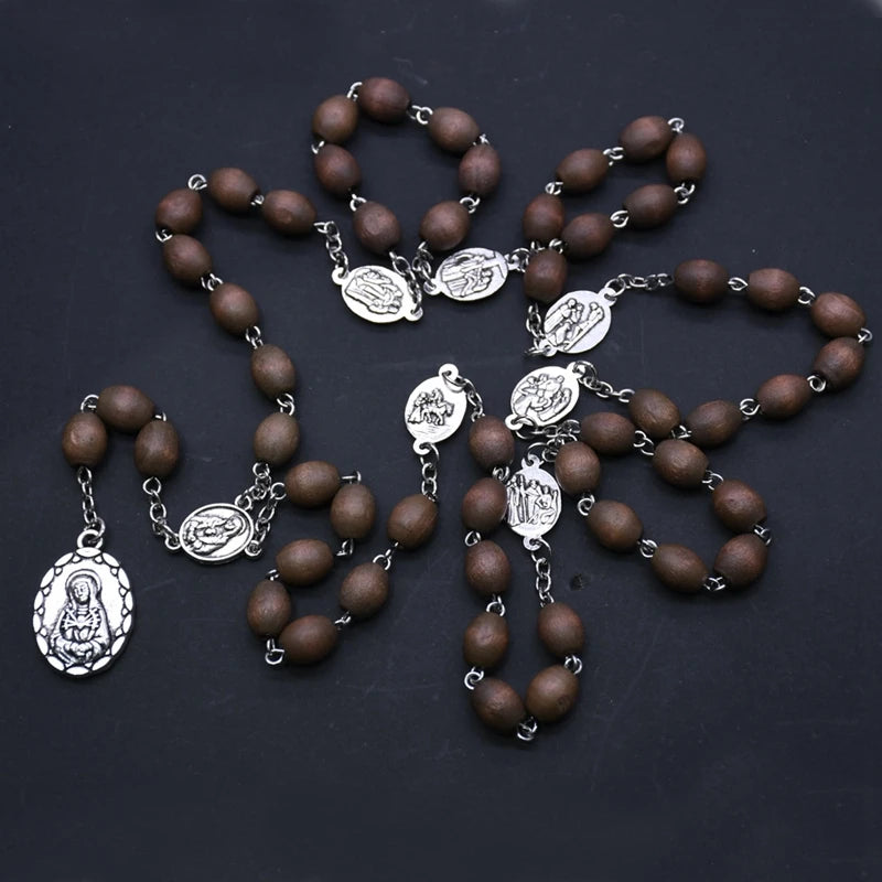 Terço Grande das Sete Dores de Maria Contas de Madeira Escura