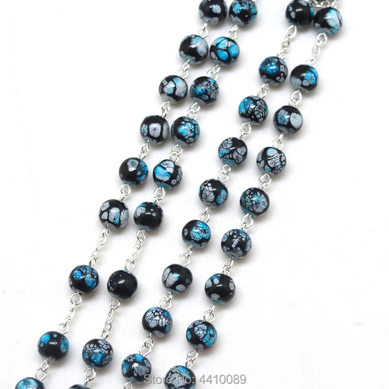 - Contas em vidro azul e preto (8 mm): beleza sóbria e elegante em cada detalhe.