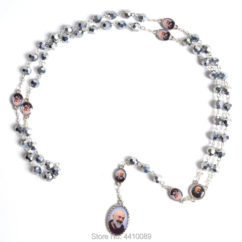 Terço de São Padre Pio com Contas Facetadas em Metal