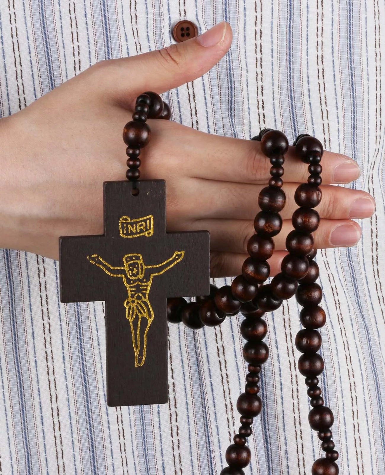 Escolha hoje o Terço Grande com Contas e Crucifixo de Madeira e leve para sua casa a presença marcante da devoção.