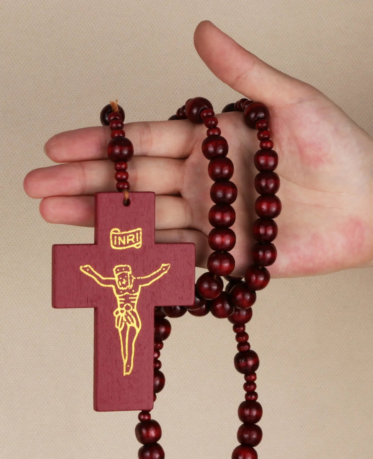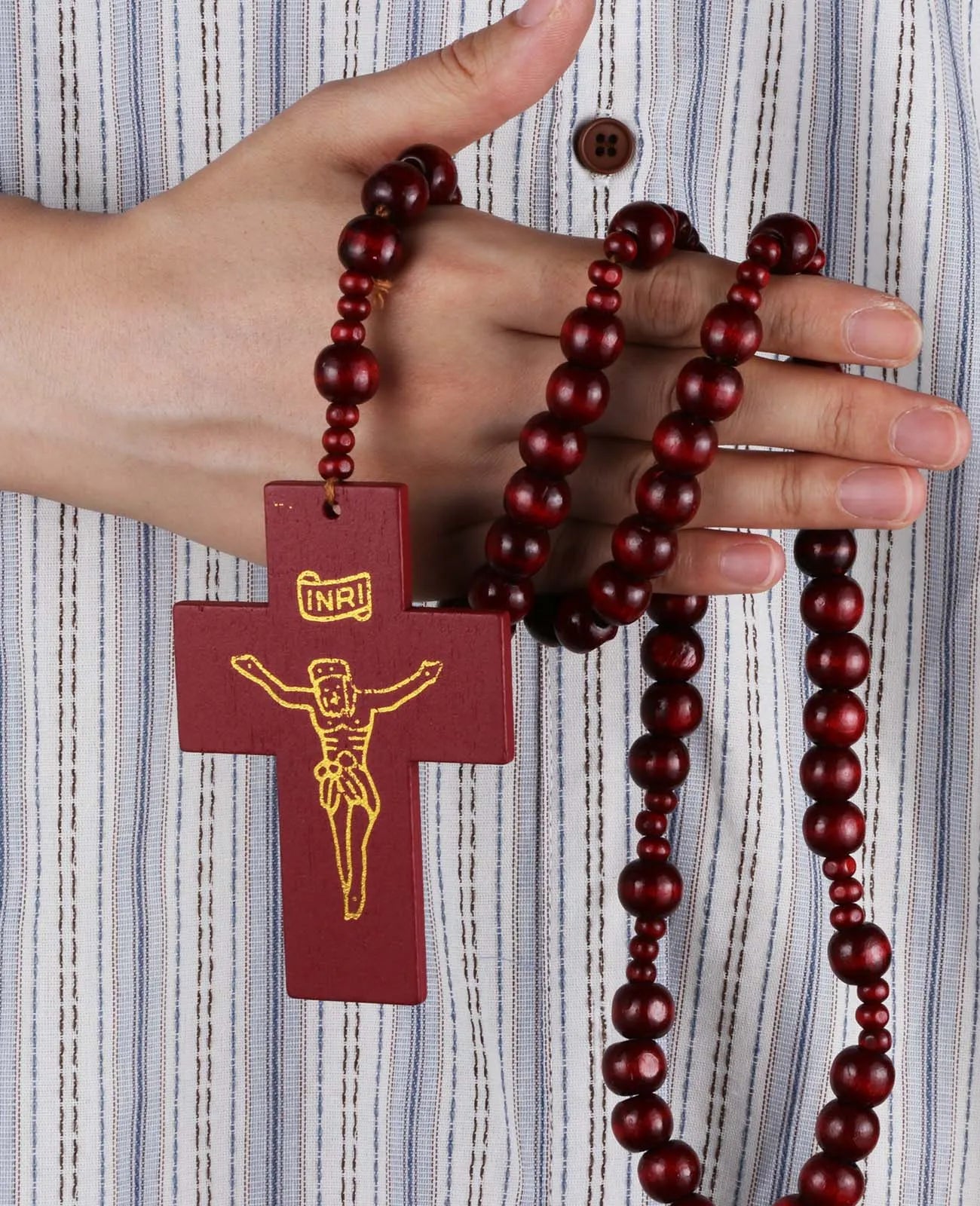 O Terço Grande com Contas e Crucifixo de Madeira é ideal para quem deseja transformar o lar ou um espaço de oração em um ambiente marcado pela fé.