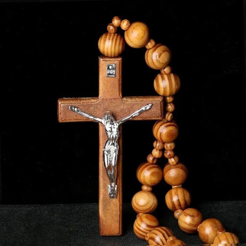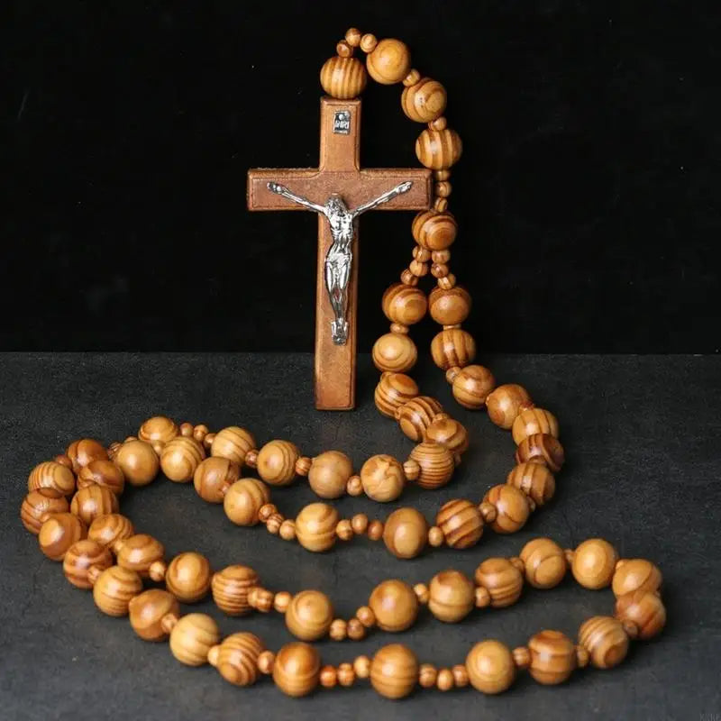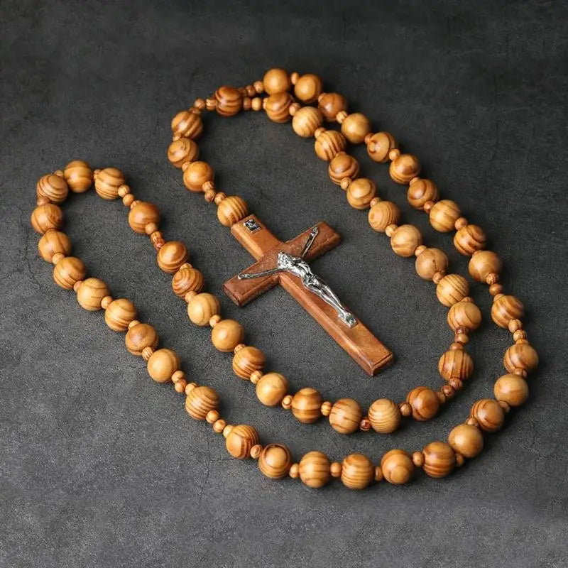 - Estilo Rústico e Natural: Feito com contas de madeira de 2 cm, transmite simplicidade, reverência e conexão com a tradição cristã.