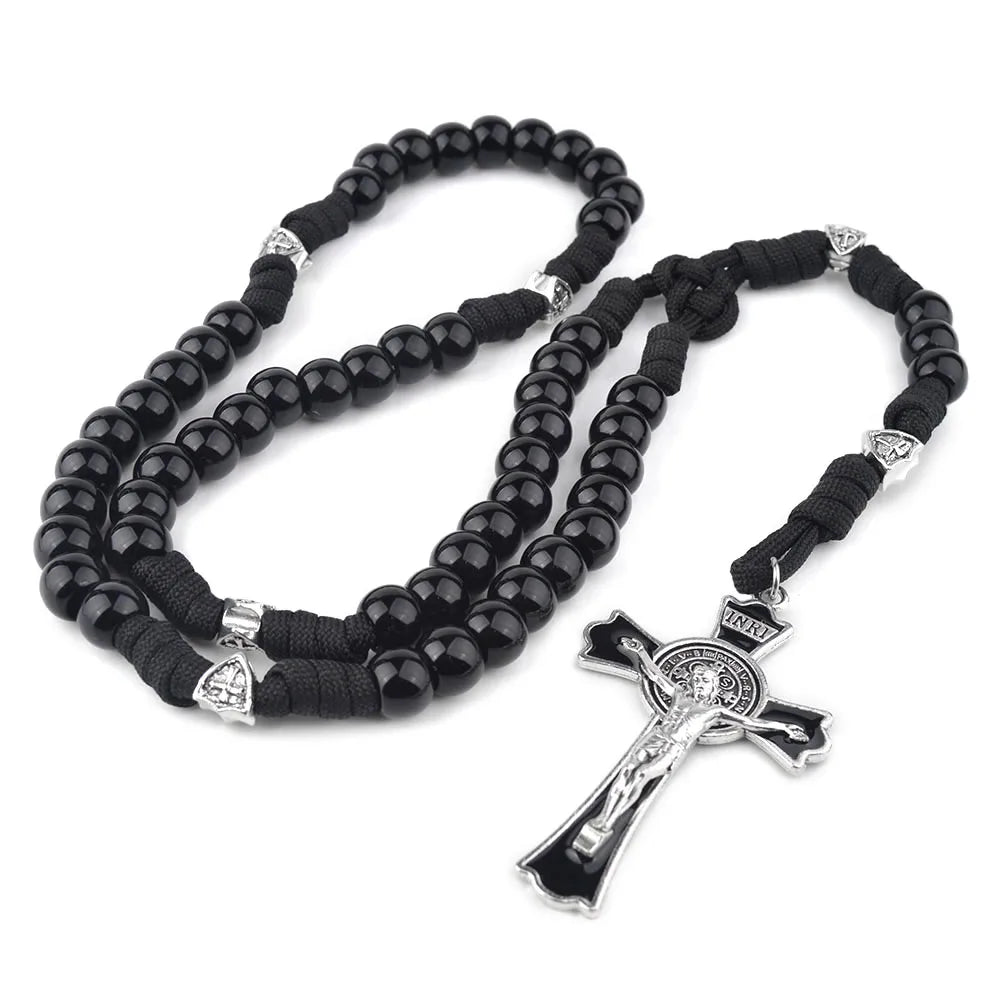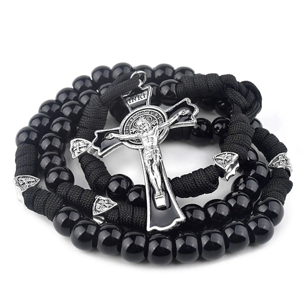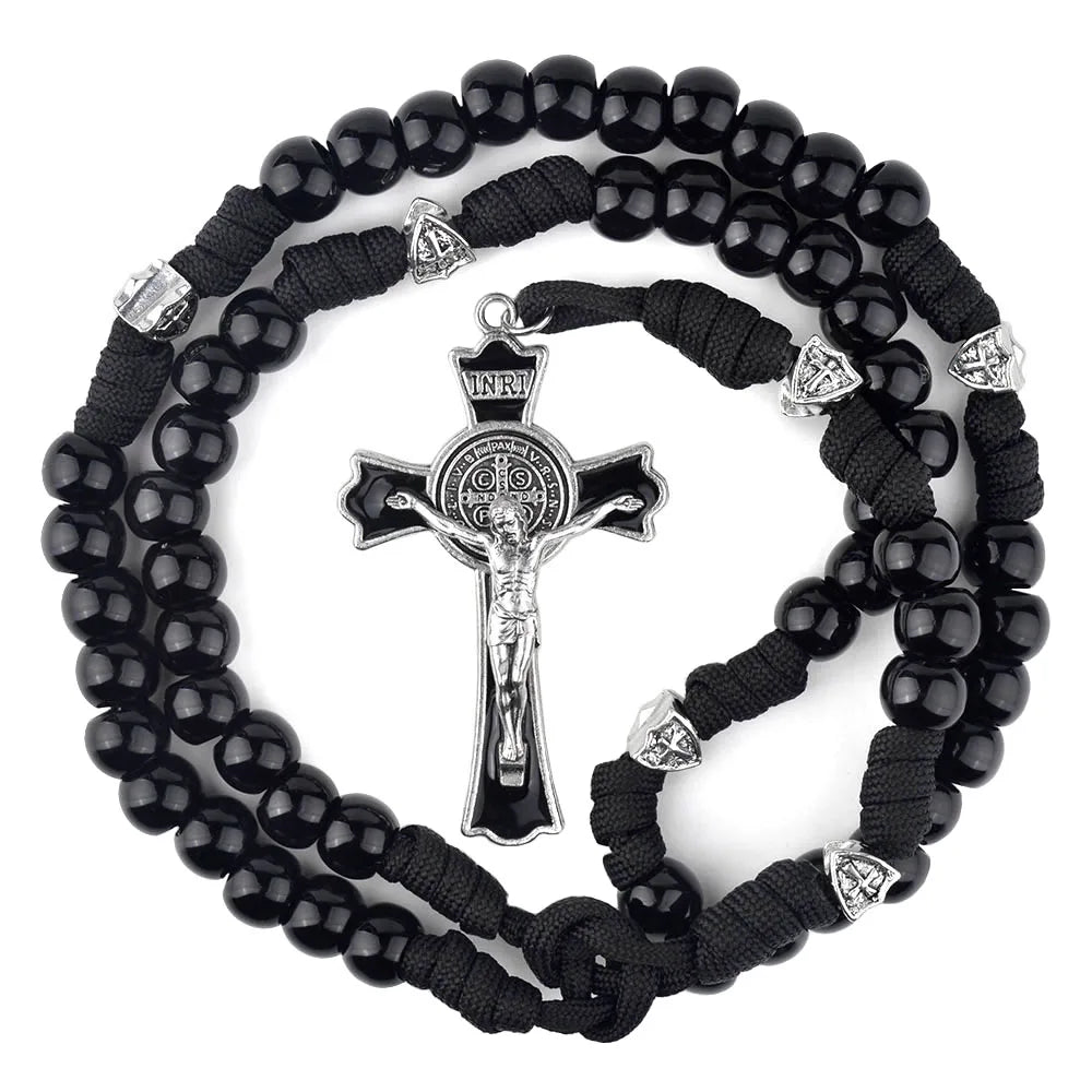 Terço Masculino de Paracord São Bento Preto com Contas Acrílicas