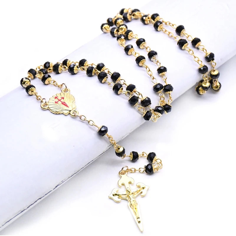 Escolha hoje o Terço Preto e Dourado de Santiago e caminhe na fé inspirado pela tradição de Compostela.