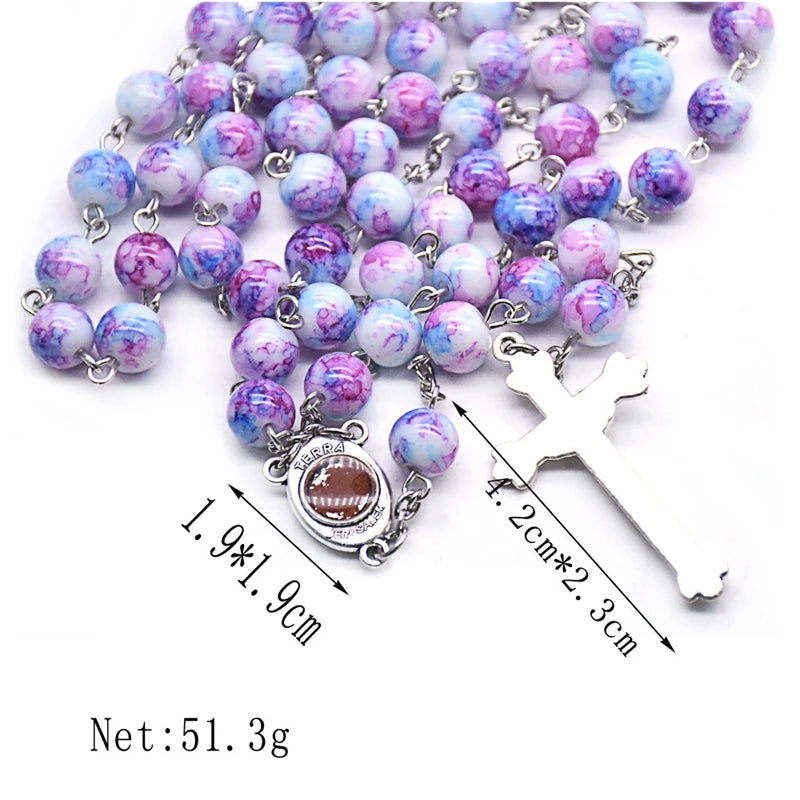 - Contas coloridas de acrílico: Suaves ao toque e visualmente encantadoras, estimulam a oração com leveza e alegria.